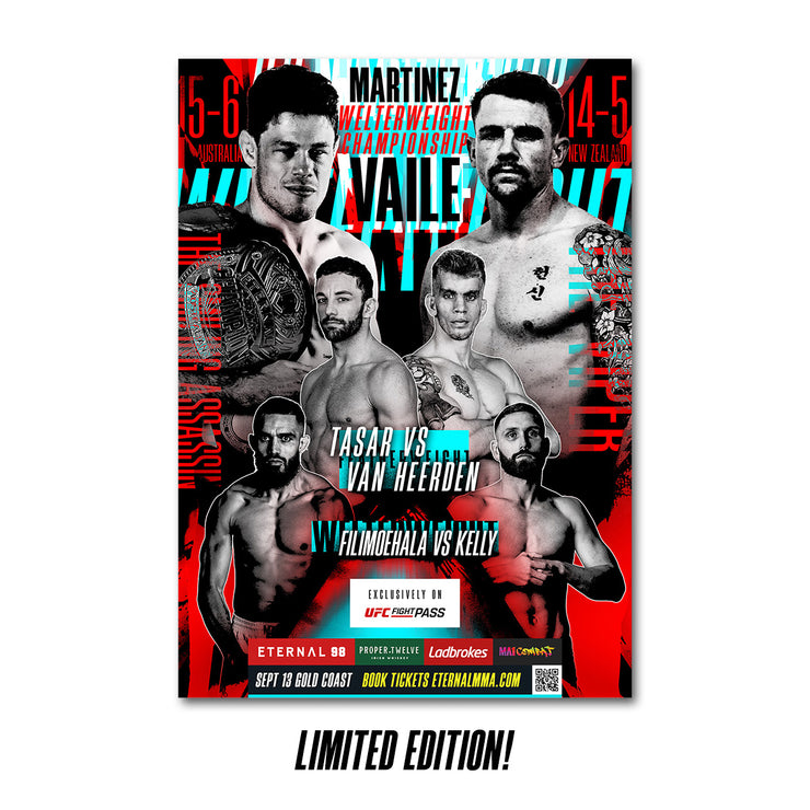 Own a piece of history from Eternal 98 with this exclusive, limited edition poster — signed by the professional fighters who stepped into the cage on fight night.