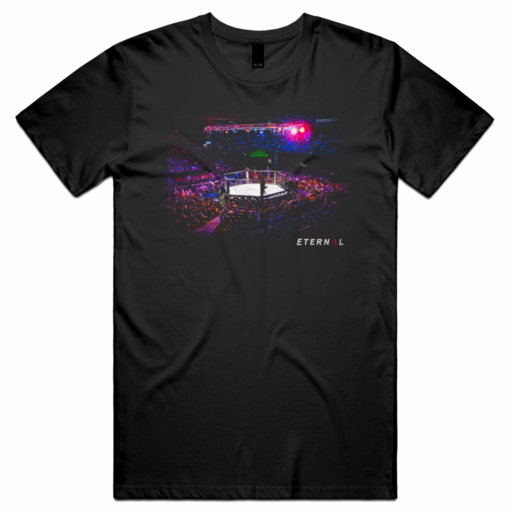 The SS25 Staple Tee keeps it clean with a subtle stadium silhouette print and small Eternal branding on a classic black base. Built from premium cotton, it’s designed for everyday comfort and durability — the kind of shirt you’ll wear long after fight night.